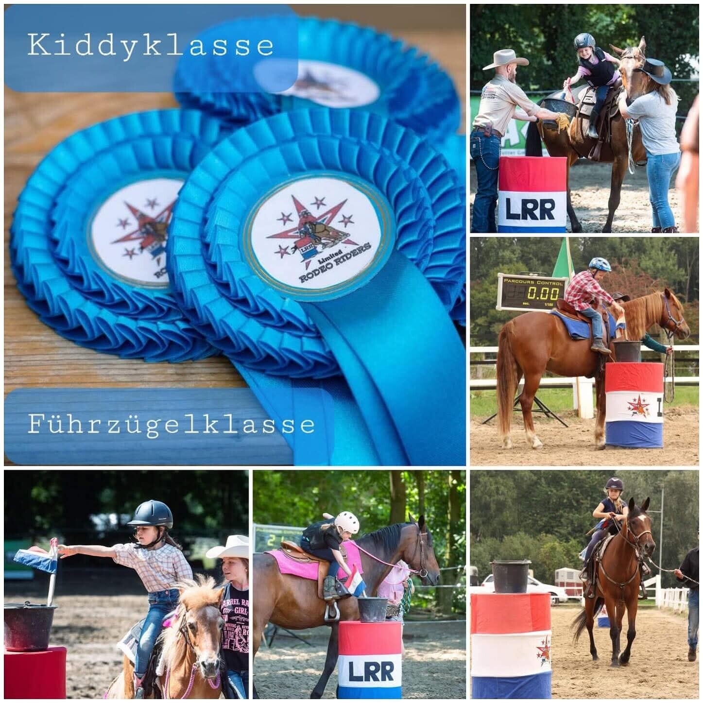 Die Kiddy starten in den drei Disziplinen: Barrel-Race, Flag-Race und Keyhole-Race. Jedes Kind erhält eine Urkunde, einen Sachpreis und einen Pokal oder eine Medaille.